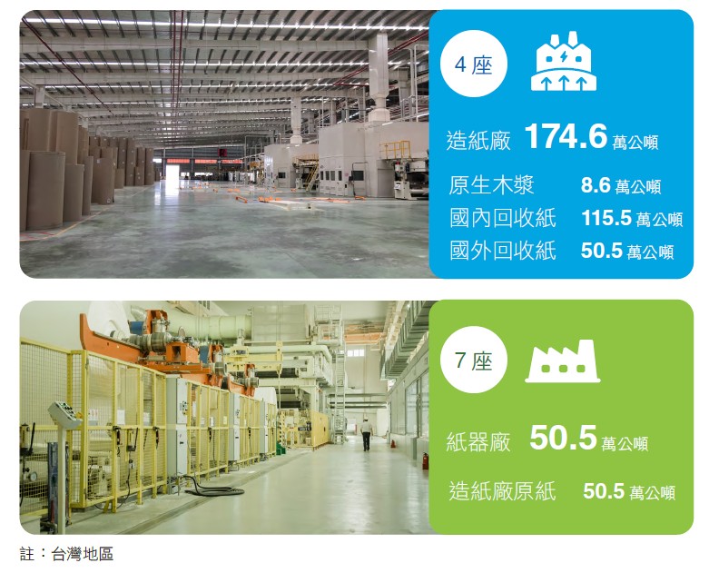 ▸ 回收紙再生利用率95.1%:使用近166萬公噸回收紙,超過三分之二回收紙來自台灣本地,健全國內回收紙生態系。